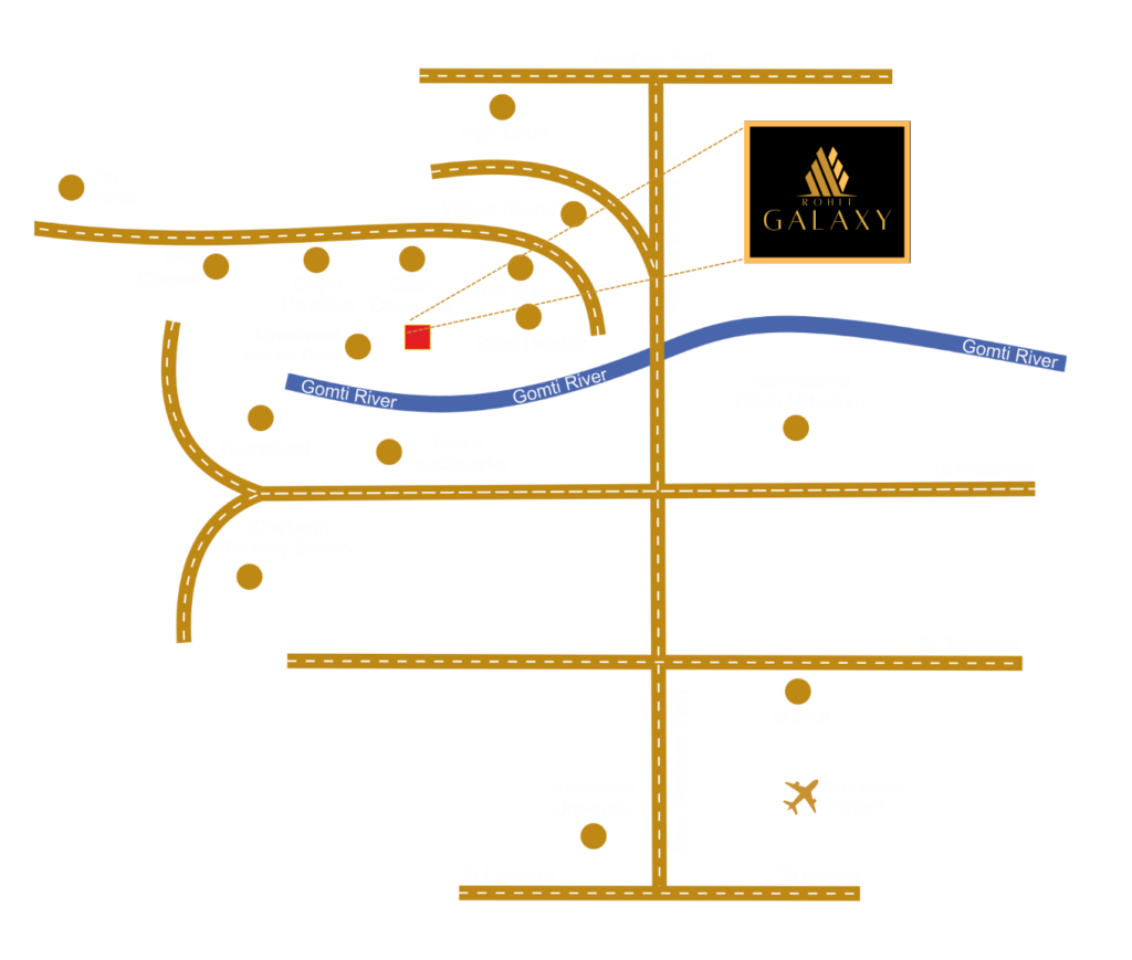 Conveniently located in Gomtinagar, one of Lucknow’s most sought-after neighborhoods, Rohit Galaxy Apartment provides easy access to a range of amenities and facilities. Residents can enjoy proximity to shopping malls, restaurants, schools, hospitals, and entertainment options, making it an ideal choice for families and professionals alike.